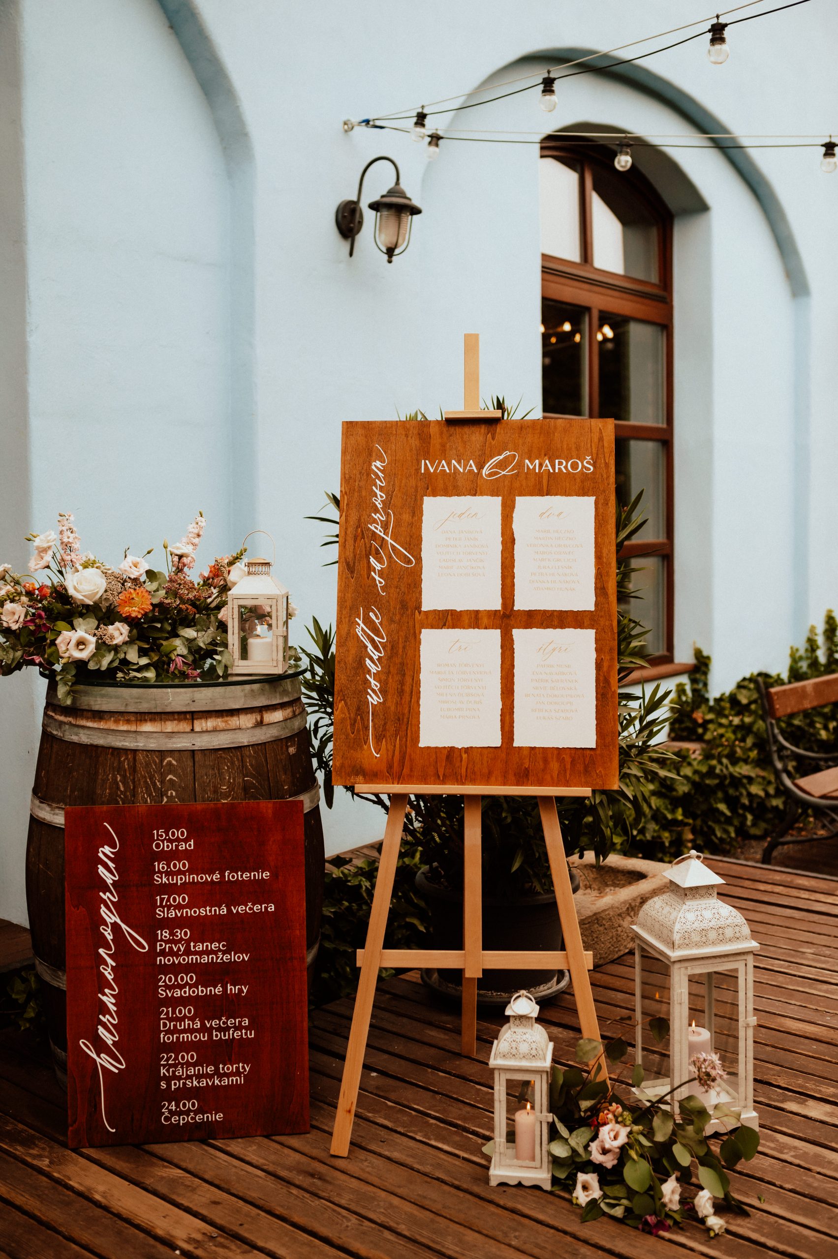 Drevený stojan je ideálna voľba na tabule na zasadací poriadok/vitajte.